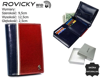 Portfel skórzany RFID ROVICKY 323-RBA-D Navy+Red
