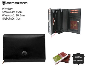 Skórzany portfel damski z plecionym zdobieniem PTN WD2-VLCN Black Gray