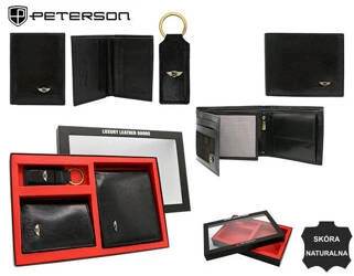 Gift set: leather wallet and key ring PETERSON PTN SET-M-1549L-KCS