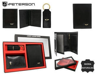 Men's Gift Set: Genuine leather wallet and leather keyring PETERSON PTN SET-M-1542L-GVT preent leather wallet and key ring set