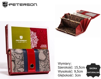Portfel damski z tłoczonej naturalnej skóry lakierowanej PETERSON PTN 42329-DSL Red