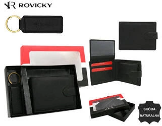 Zestaw prezentowy: portfel skórzany męski + brelok ROVICKY R-PK5-N992-7027 BLAC
