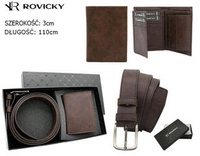 Dwuczęściowy zestaw prezentowy męski: pasek i portfel ze skóry ekologicznej Rovicky PU R-N004-110-120 Brown