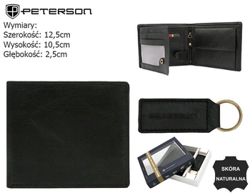 Trzyczęściowy zestaw prezentowy: portfel męski, etui na karty płatnicze i brelok ze skóry naturalnej Peterson PTN SET3-N79L-VT Brown
