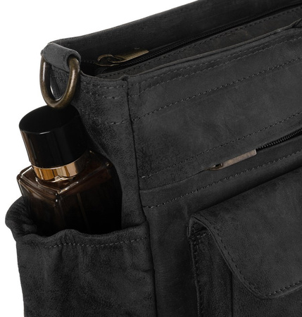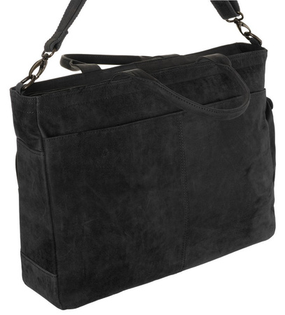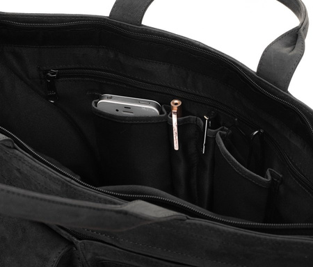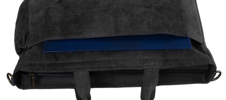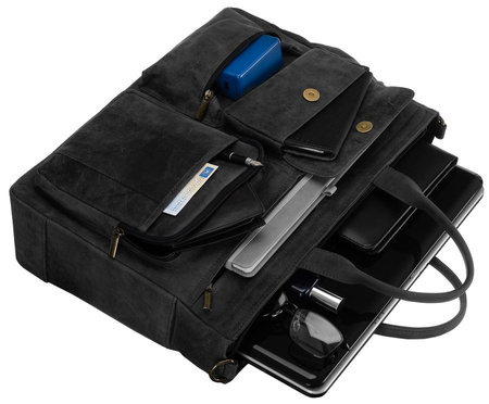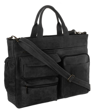 - Capacious and functional men's bag made of top quality natural leather. Bag with a single compartment inside of which there is a pocket for a 15" laptop and three pockets for small items. In addition, on the outside there are six pockets of various sizes.