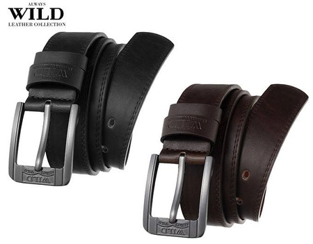 - Wide men's belt with metal buckle. Sewn on the inside from high-grade natural leather and on the outside from ecological leather. Sold in sets of 12.