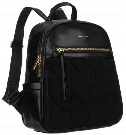 - Odszyty z ekologicznej skóry z frontowym panelem obszytym pikowanym eko zamszem. Ma jedną komorę zamykaną suwakiem. W wyposażeniu uchwyt na dłoń i długie szelki.