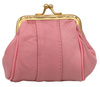 A small, horizontal women’s coin purse made of genuine leather. The structure features subtle pleats, giving it an elegant and stylish look. It has a distinctive gold kiss lock closure. This is a No Logo product.
