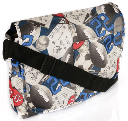 - Functional women's bag made of sturdy fabric covered with a colorful print. Features one compartment closed with a flap and zipper to carry a 15" laptop, one pocket for small items and an open storage compartment on the reverse. Holds A4 size.