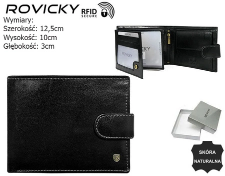 - Folding men's wallet with clasp sewn from natural leather. Equipped with, among other things, nine card compartments, four pockets for documents like a registration card in the cover, a zipper compartment, a photo window. RFID STOP membrane.