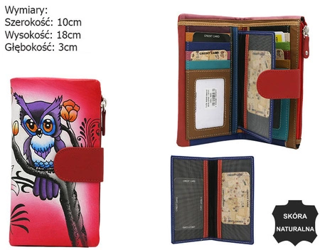 Hand-Painted Women's Wallet Made of Genuine Leather N18-SPW OWL Red No Logo in Wholesale Offer