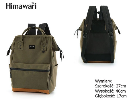 - A spacious urban backpack by Himawari, made from high-quality waterproof polyester fabric. It features a laptop compartment for devices up to 15" and a USB port. It accommodates A4 format. Its capacity is 23 liters.