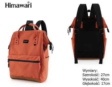 - A spacious urban backpack by Himawari, made from high-quality waterproof polyester fabric. It features a laptop compartment for devices up to 15" and a USB port. It accommodates A4 format. Its capacity is 23 liters.