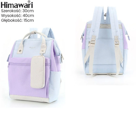The Himawari travel backpack is a true masterpiece in pastel tones, captivating with both its appearance and the subtlety of its aesthetics. The upper section, in a delicate shade of blue, resembles a cloudless morning sky, bringing calm and harmony to everyday travels. The lower part, in a soft lavender hue, adds a touch of lightness and romantic charm, akin to a blooming lavender field in the spring sunshine.