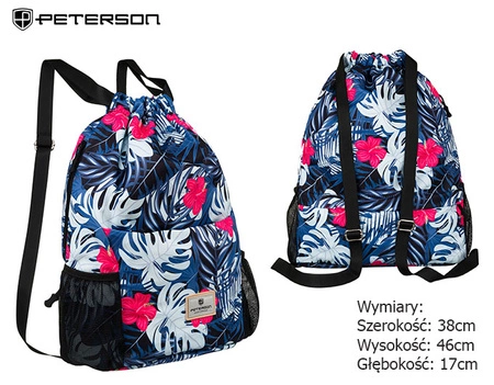 - Lekki i funkcjonalny plecak Peterson, wykonany z trwałej tkaniny poliestrowej, odporny na uszkodzenia. Minimalistyczny design z logo na naszywce sprawia, że świetnie sprawdzi się na co dzień – na trening, zakupy czy krótkie wyjazdy.
