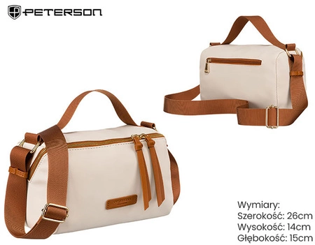 - Torebka z tkaniny poliestrowej marki Peterson to połączenie stylu i funkcjonalności. Posiada regulowany pasek i wygodną rączkę, co zapewnia komfort noszenia. Idealna na co dzień – trwała, praktyczna i modna.
