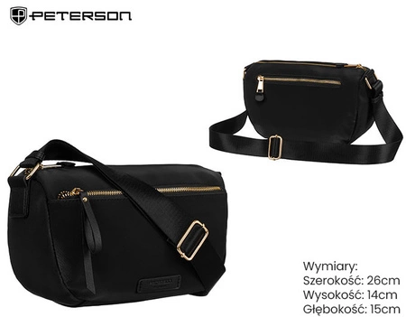 - Torebka z tkaniny poliestrowej marki Peterson to stylowy i praktyczny dodatek na co dzień. Posiada regulowany pasek, który zapewnia wygodę noszenia. Trwała, lekka i idealna do codziennych stylizacji.