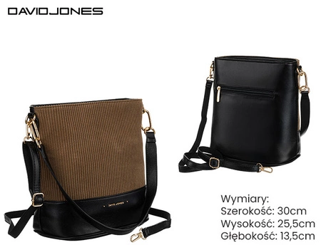 - Stylowa torba z połączenia sztruksu i eko skóry. Posiada odpinany, regulowany pasek na ramię, łącząc elegancję z funkcjonalnością. Idealna na co dzień i spotkania, praktyczna i modna.
