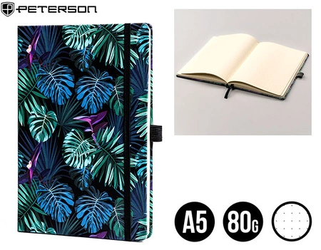 - Notes A5 w kropki, 100 kartek o gramaturze 80g. Estetyczna okładka, zamykany na gumkę, idealny do twórczych notatek, szkiców i planów. Funkcjonalny, poręczny i elegancki wybór do biura i na co dzień.