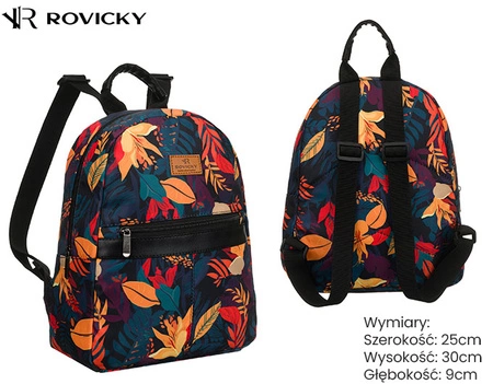 - Zgrabny plecak Rovicky to idealny wybór na co dzień – modny design, ciekawy wzór i wytrzymały materiał zapewniają komfort i styl. Plecak damski Rovicky sprawdzi się do pracy, szkoły i na miasto. Styl i funkcjonalność w jednym!