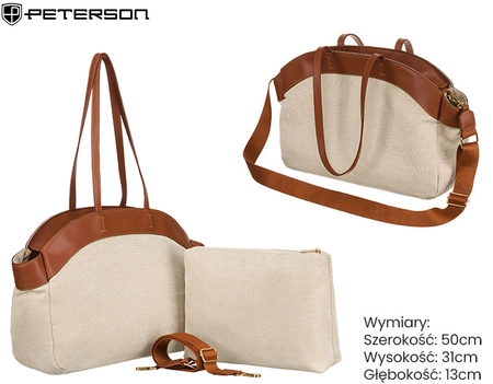 - Elegancka torba damska Peterson z wyjmowanym organizerem. Stylowe połączenie materiałów, funkcjonalne wnętrze i detale sygnowane logo marki. Idealna do codziennych i biznesowych stylizacji.