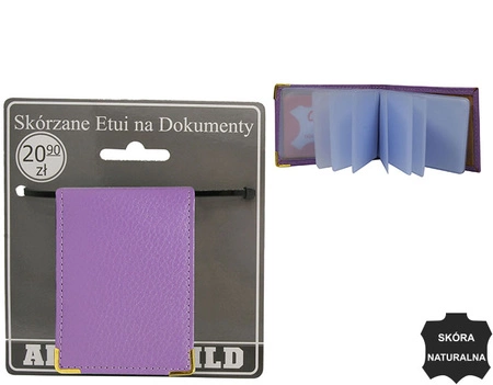 Etui na dokumenty i wizytówki wykonane ze skóry naturalnej, produkt pakowany na blister.