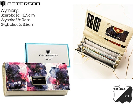 - Portfel Peterson wykonany z połączenia skóry naturalnej i skóry ekologicznej.