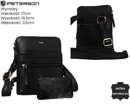 - Elegancki zestaw Peterson: męska torba skórzana oraz skórzane etui na klucze. Stylowe i praktyczne akcesoria z naturalnej skóry, idealne na co dzień – łączą wygodę, trwałość i ponadczasowy charakter.