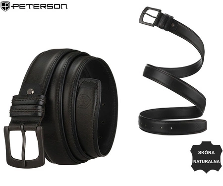 - Męski pasek Peterson ze skóry naturalnej, szerokość 4 cm. Klasyczna metalowa klamra i możliwość skrócenia zapewniają wygodę noszenia. Solidny, szeroki pasek idealny do jeansów i codziennych stylizacji. Stylowy dodatek dla wymagających mężczyzn.
