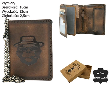 - Made of natural nubuck leather. The model does not hold the registration card. The wallet hangs on a long and solid chain. Equipped with RFID system.