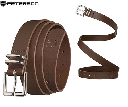 - Męski pasek Peterson ze skóry naturalnej, szerokość 4 cm. Klasyczna metalowa klamra i możliwość skrócenia zapewniają wygodę noszenia. Solidny, szeroki pasek idealny do jeansów i codziennych stylizacji. Stylowy dodatek dla wymagających mężczyzn.