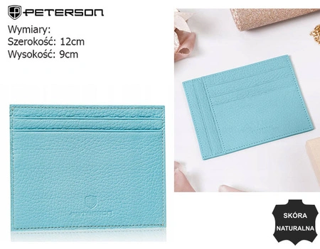 - Skórzane etui na karty marki Peterson to elegancki i praktyczny dodatek. Wykonane z wysokiej jakości skóry, wyróżnia się prostym designem i subtelnym tłoczonym logo. Kompaktowe i trwałe, idealne do codziennego użytku.
