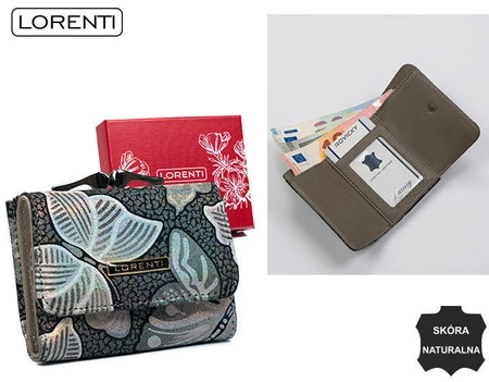 - Women's purse made of natural leather. Closed with a flap with a snap closure. Equipped with a card pocket, a bill pocket and a coin section closed with an earworm. Accessorized with RFID Protect security. Packaged in the original manufacturer's box.