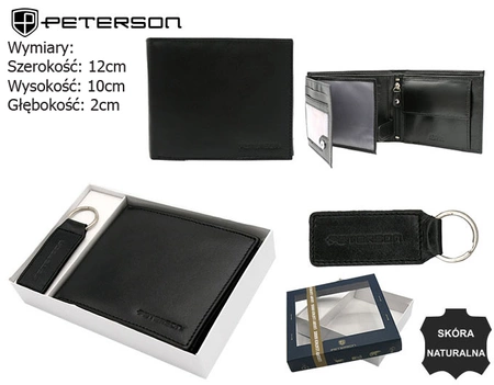 Gift set: natural leather wallet and leather keychain PETERSON PTN SET-M-N992-KCS