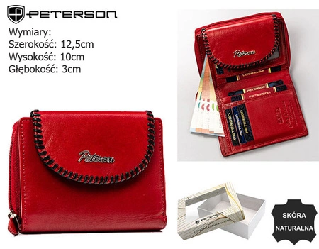 - Sewn from natural leather. Wallet with classic styling. Model in horizontal orientation, fastened with a flap with a press stud, on the front there is a silver inscription of the brand. The model does not accommodate the registration card.