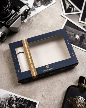 Elegance and sophistication converge in the exclusive gift set by Peterson, designed for men who value classic style, functionality, and timeless appeal. This exceptionally refined set, consisting of a genuine leather wallet and a stylish keychain, embodies the essence of luxury, all beautifully packaged in a branded box.
