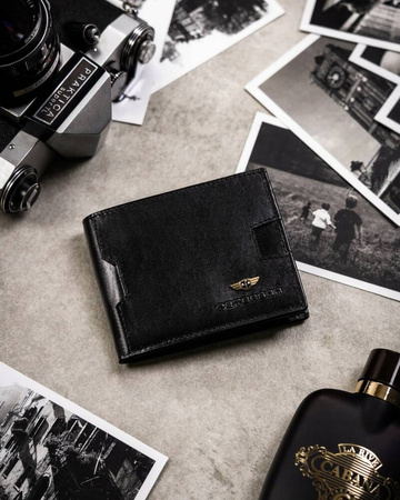 Crafted from the finest quality genuine leather, the wallet impresses with its precise craftsmanship and functional design. Its elegant color, accentuated by a subtle sheen, makes it a timeless accessory. The thoughtfully organized interior provides ample space for bills, coins, payment cards, and documents. Equipped with RFID BLOCKING SYSTEM technology, it ensures secure protection against unauthorized access to data from contactless cards, combining classic style with modern solutions.