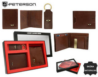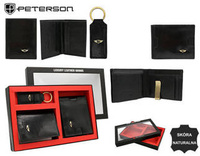 The Peterson gift set is a unique combination of practicality, luxury, and style, perfectly suited to the tastes of the modern man. The set includes three harmoniously coordinated items: a leather wallet, a cardholder, and a keychain, all elegantly packaged in a sophisticated box.