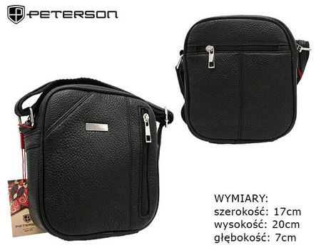 - Men's crossbody bag made of ecological leather. Single-compartment, finished with a lining. Equipped with internal and external pockets. The bag hangs on a long, adjustable strap.