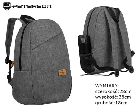 - Sports backpack made of polyester. Single compartment, zippered. Equipped with two external pockets - a front zipper pocket and a side bottle holder.
