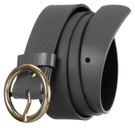 - Pasek damski wykonany z wysokiej klasy połyskującej, bydlęcej skóry naturalnej o ziarnistej fakturze. Posiada złotą metalową klamerkę w okrągłym kształcie. Możliwość samodzielnego skrócenia paska.