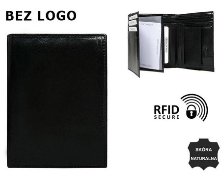 - Pionowy portfel męski bez zewnętrznego zapięcia. Wykonany z gładkiej, jednobarwnej skóry naturalnej dobrej jakości. Produkt bez tłoczeń, idealna baza pod produkt Twojej firmy. Portfel wyposażony w niezbędne przegródki. Zabezpieczony systemem RFID STOP.