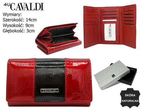 - Czerwony lakierowany portfel damski ze skóry naturalnej. Portfel wyposażony w rozbudowane wnętrze na karty i dokumenty aż 17 przegródek i klasyczną sekcję na gotówkę, w tym zewnętrzną kieszeń na bilon. Mieści dowód rejestracyjny. Pudełko producenta.