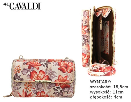 - Mała torebko portfel typu piórnik 2w1 odszyta ze skóry ekologicznej zdobionej kwiatowym motywem. Torebka wyposażona w kieszeń na telefon zamykaną klapką z zatrzaskiem oraz sekcję klasycznego portfela na karty i gotówkę. Długi pasek na ramię