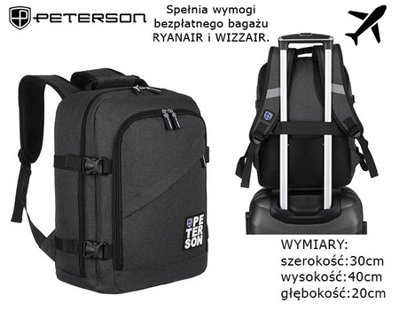 - Plecak podróżny Peterson wykonany z wytrzymałej tkaniny, wygodny i praktyczny w codziennym użytkowaniu. Starannie zaprojektowane wnętrze z przemyślanym układem ułatwia pakowanie i zapewnia komfort podczas każdej podróży.