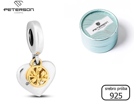 Srebrny charms serce dla mamy ze złotym drzewem PETERSON® CHW-005 w ofercie hurtowej