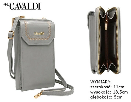 - Torebko portfel 2w1. Model w szarym kolorze odszyty ze skóry ekologicznej. Torebka wyposażona w kieszeń na telefon - zamykana ozdobną klapką z zatrzaskiem, 4 przegródki na karty i sekcję klasycznego portfela na gotówkę. W komplecie długi pasek na ramię.