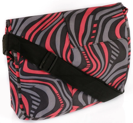- Funkcjonalna torba damska wykonana z mocnej tkaniny pokrytej kolorowym nadrukiem. Wyposażona w jedną komorę zamykaną klapką i suwakiem, umożliwiającą przenoszenie laptopa 15", jedną kieszonkę na drobiazgi i otwarty schowek na rewersie. Mieści format A4.
