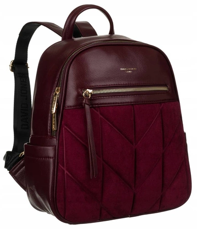 - Odszyty z ekologicznej skóry z frontowym panelem obszytym pikowanym eko zamszem. Ma jedną komorę zamykaną suwakiem. W wyposażeniu uchwyt na dłoń i długie szelki.
