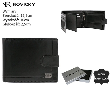 - Klasyczny, poziomy, skórzany portfel męski na zatrzask. Portfel wyposażony w rozbudowaną sekcję na karty i dokumenty - aż 13 zakładek, tradycyjne wnętrze na gotówkę i schowek na suwak. Zapakowany w pudełko prezentowe. Membrana RFID STOP.